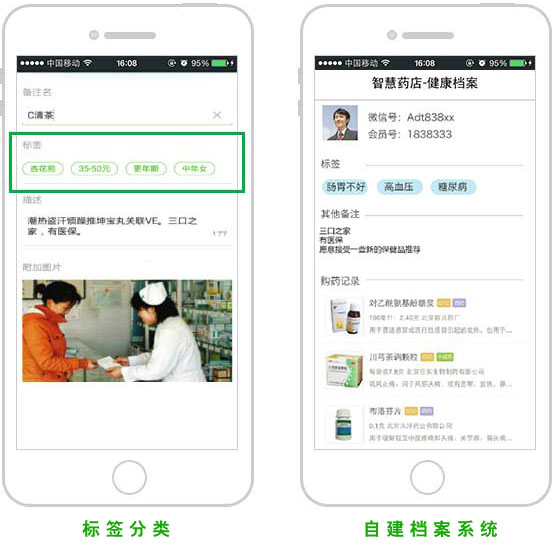 通過對用戶購藥記錄、積分兌換等大數據的分析,可進行用戶標簽化的精準管理